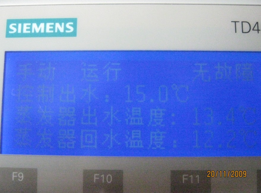2)文本屏显示蒸发器实时进/出水温度、实时能量百分比、温度设定值及故障报警等;