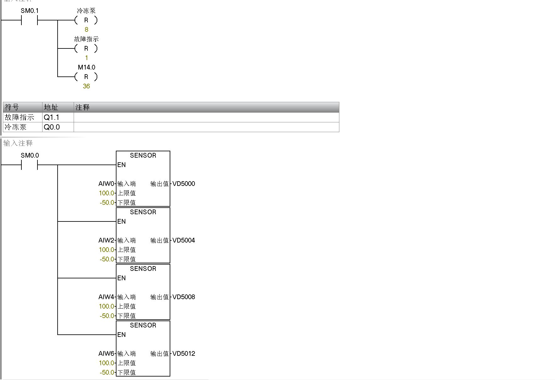 程序说明:1) 程序包括:启动程序、模拟量转换程序、卸载/加载程序、保护程序及报警程序。