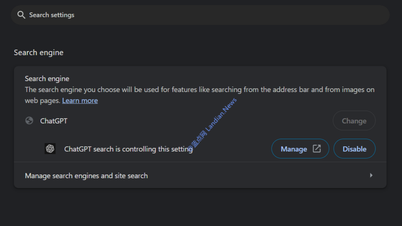 安装后这个扩展程序会自动将 Chrome 或 Microsoft Edge 的默认搜索引擎换成 ChatGPT Search,如果你不想使用了那也可以直接删除这个扩展程序。