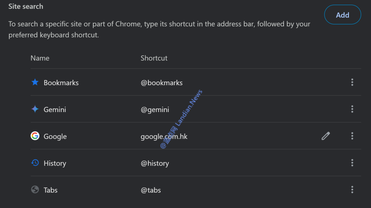 上图:添加后点击编辑将其设置为默认搜索引擎